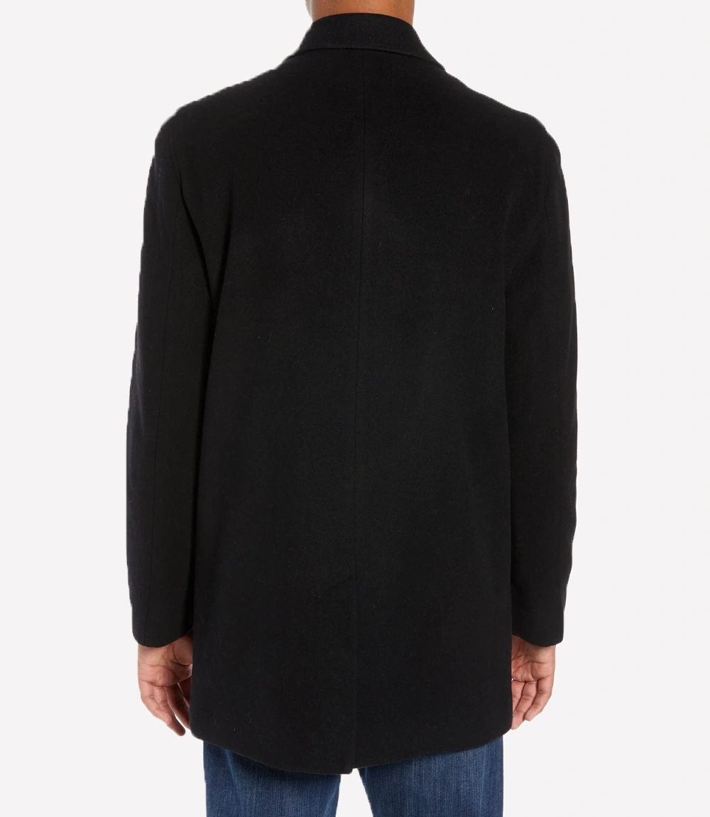 Palm Knit Wool Blend Black Overcoat